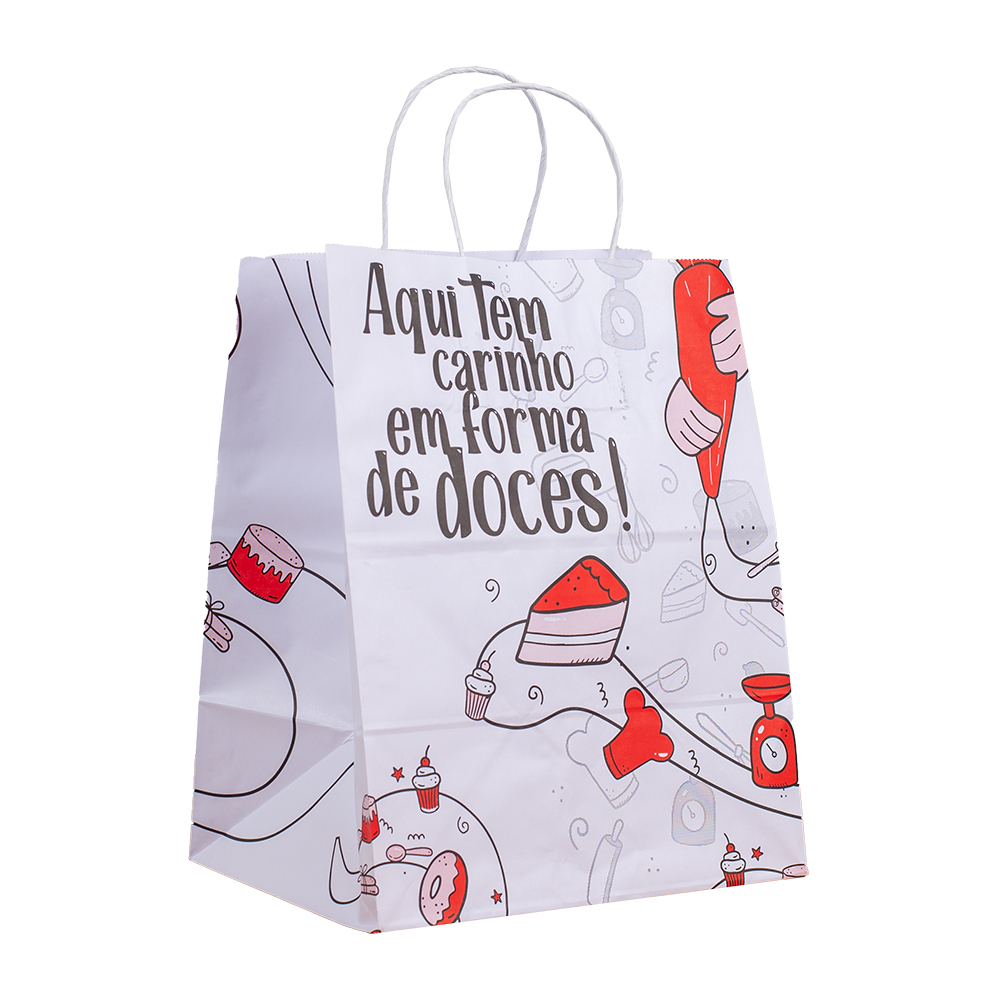 BOLSA PAPEL BRANCA TIMBRADA COM ALCA P 25,5X20X14